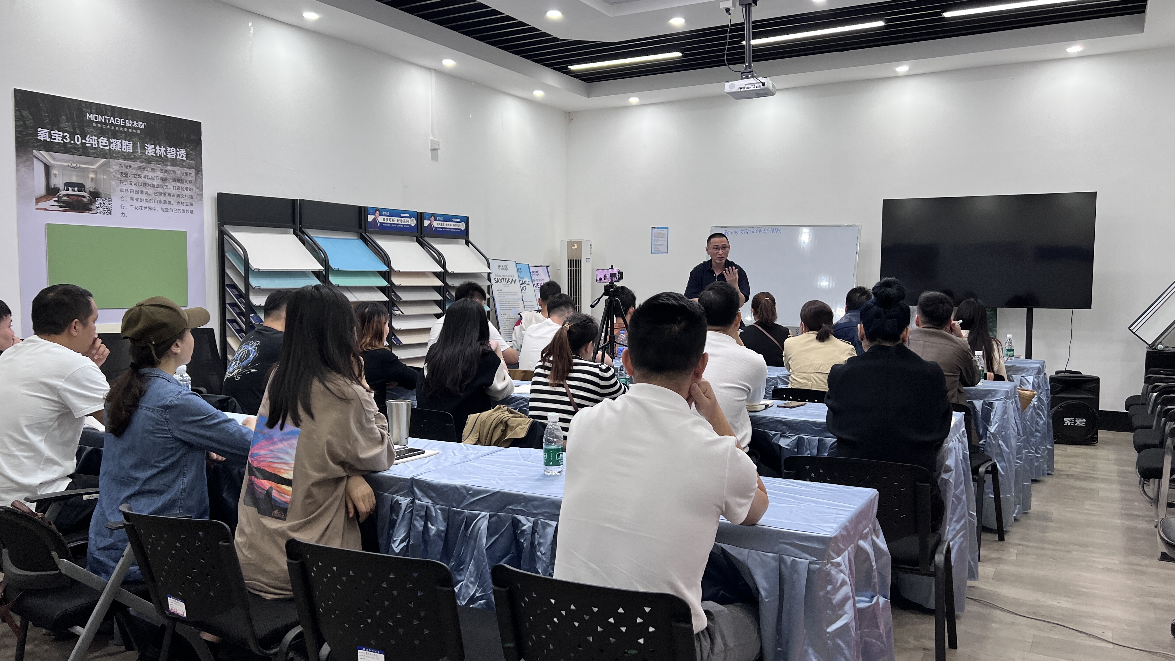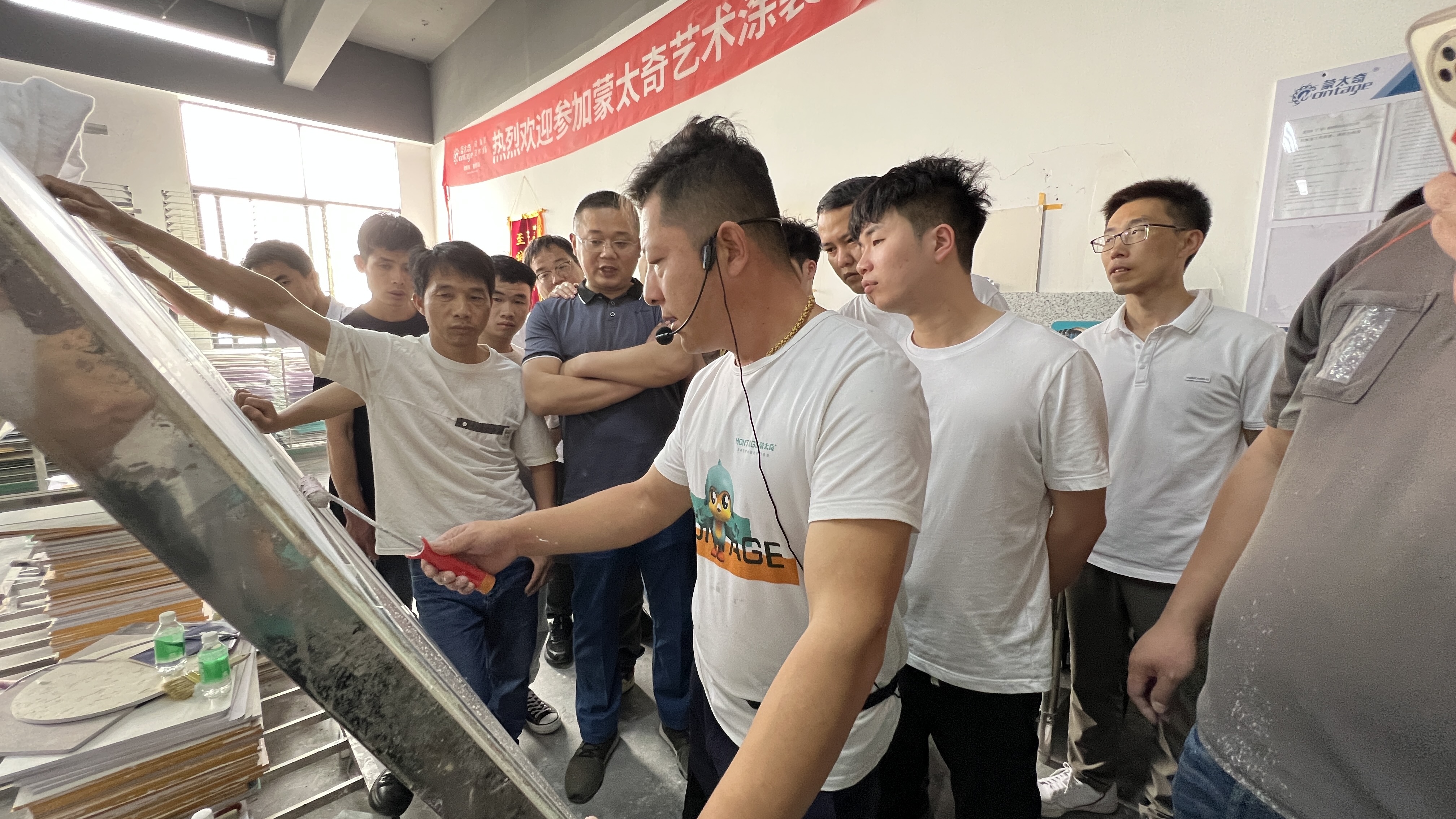 現(xiàn)場培訓結合蒙太奇產品體系,通過理論講解+實操考核的方式來助力墻藝師學員輕松掌握藝術涂裝技術,確保他們在今后的客戶施工服務中能盡善盡美的展現(xiàn)藝術涂裝的技術魅力,呈現(xiàn)藝術涂裝產品的極致質感與場景美學。