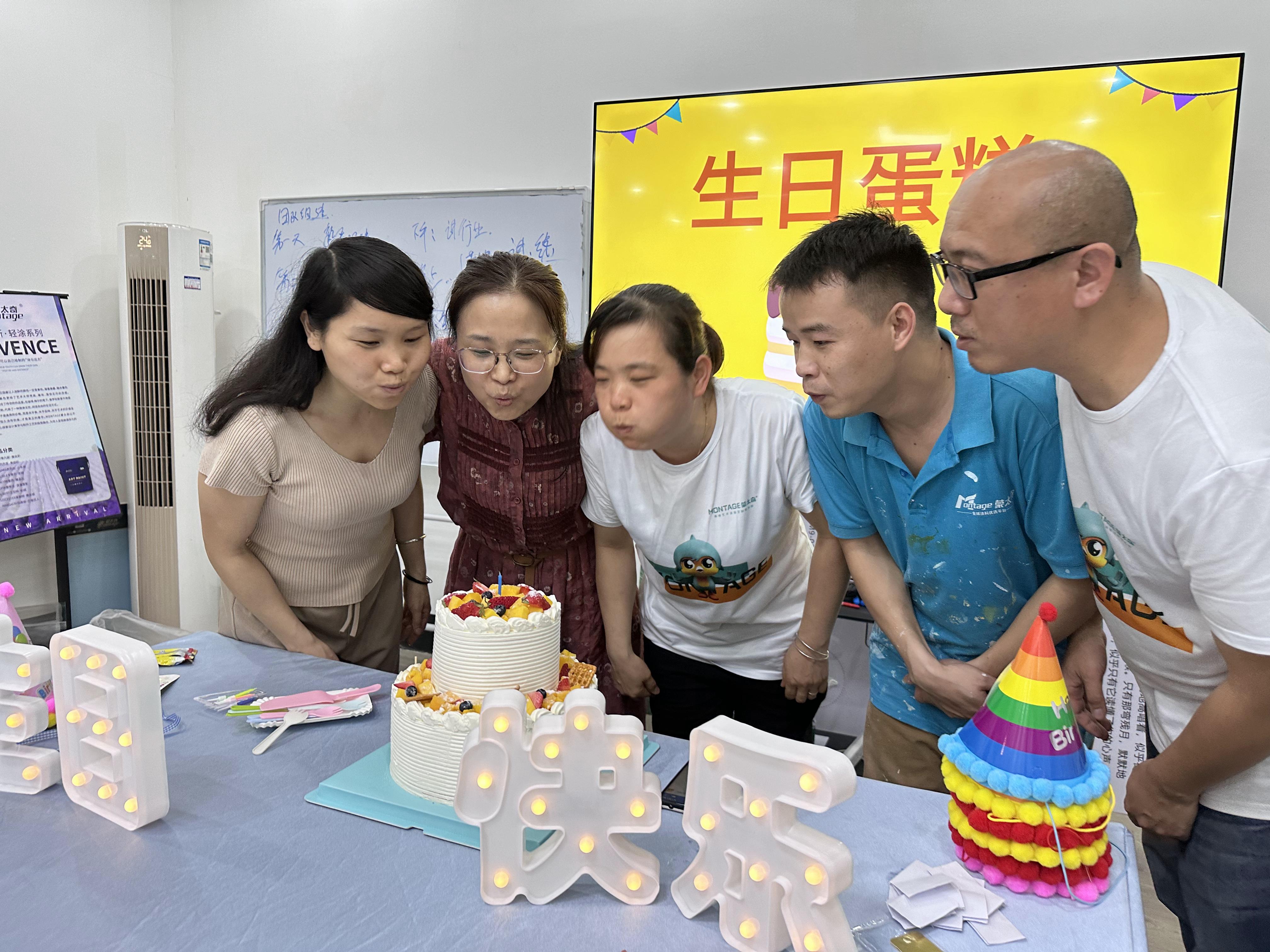 無論是在蒙太奇海駿達(dá)總部還是在蒙太奇生產(chǎn)工廠,一季度生日的員工都享受到壽星的禮遇。戴生日帽,領(lǐng)取生日禮物,點(diǎn)燃生日的蠟燭,共唱生日贊歌......在團(tuán)隊(duì)成員的祝福下,度過了一個(gè)集體式的生日派對(duì)。