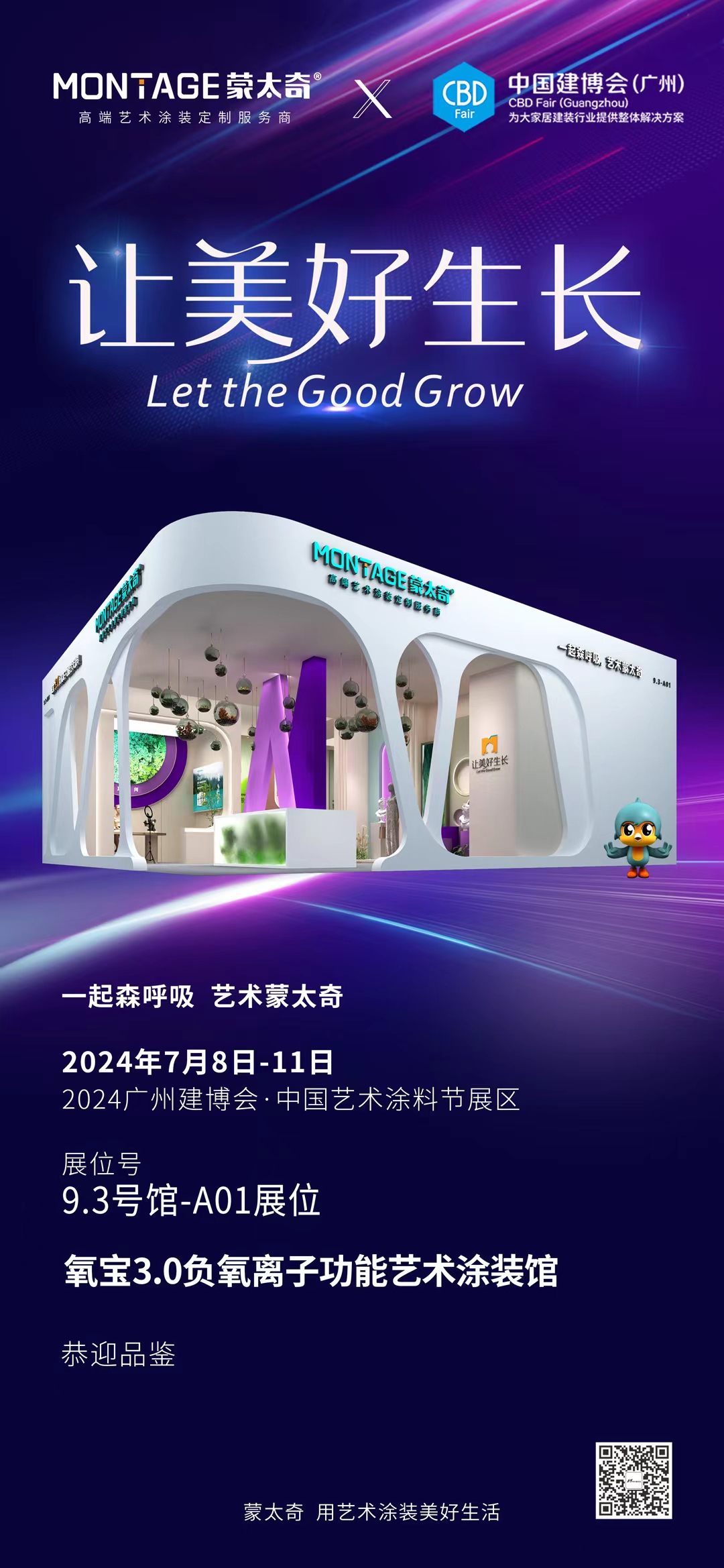 本次展會,蒙太奇將推出讓美好生長”年度品牌策略,繼續(xù)以獨創(chuàng)性氧寶3.0負氧離子高端功能藝術涂料為主打,傳承“一起森呼吸,藝術蒙太奇“的展館設計理念,全新推出氧寶3.0流行色彩和臻石高端石材系列產品,呈現(xiàn)蒙太奇“好產品+好色彩+好工藝+好服務”高端藝術涂裝定制服務品牌價值。