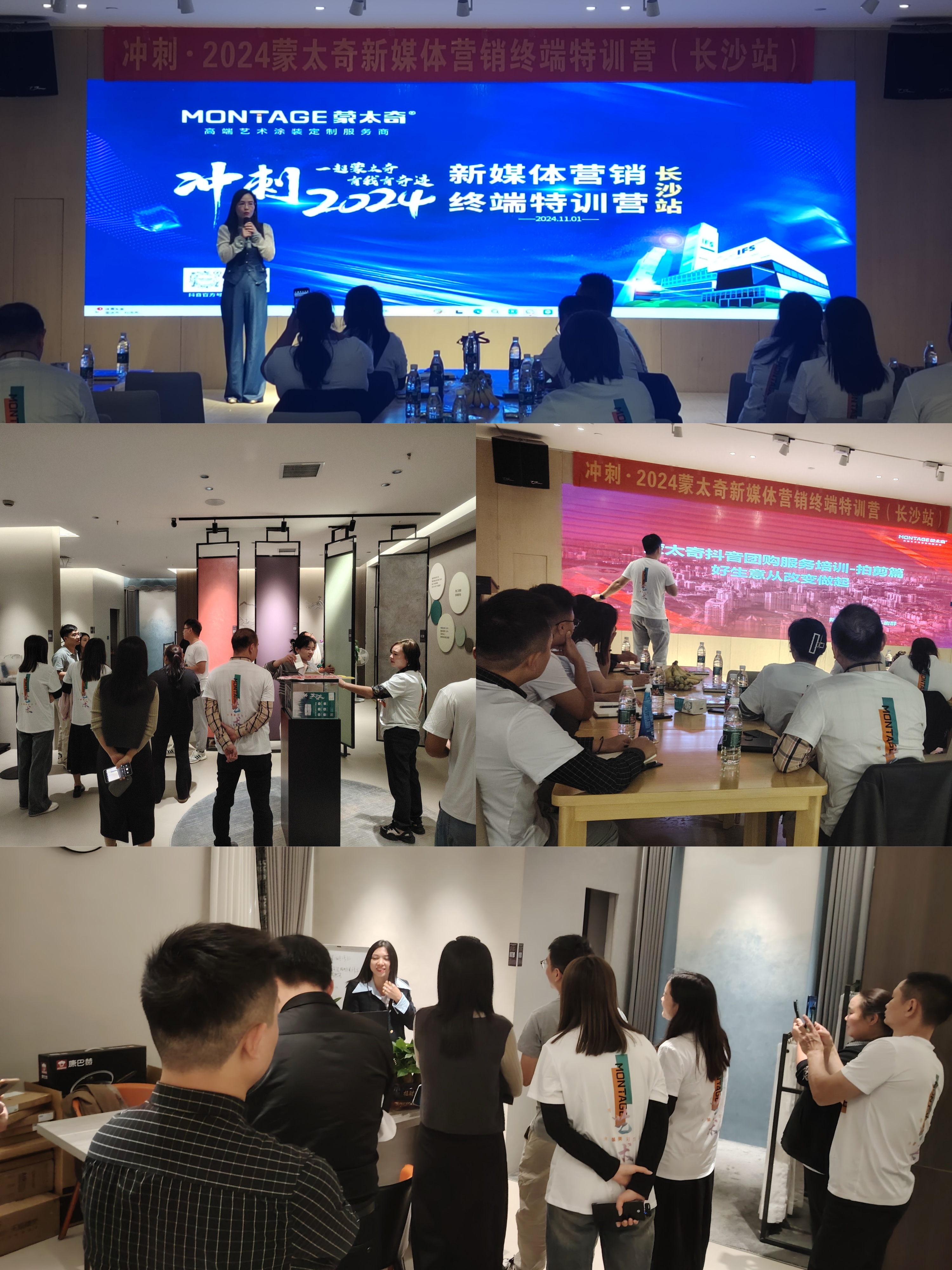 在蒙太奇雙11補貼季全國大促啟動同時,蒙太奇聚焦湘贛區(qū)域的經(jīng)銷商,深度落地執(zhí)行終端門店O2O營銷策略。蒙太奇品牌聯(lián)合創(chuàng)始人、藝術(shù)涂料最美老板娘呂芳方,親率團隊前往長沙,啟動長沙站“新媒體營銷終端特訓營”,為湘贛區(qū)域的經(jīng)銷商開展終端門店新媒體運營實操培訓,并就雙11活動進行銷售動員與指導。