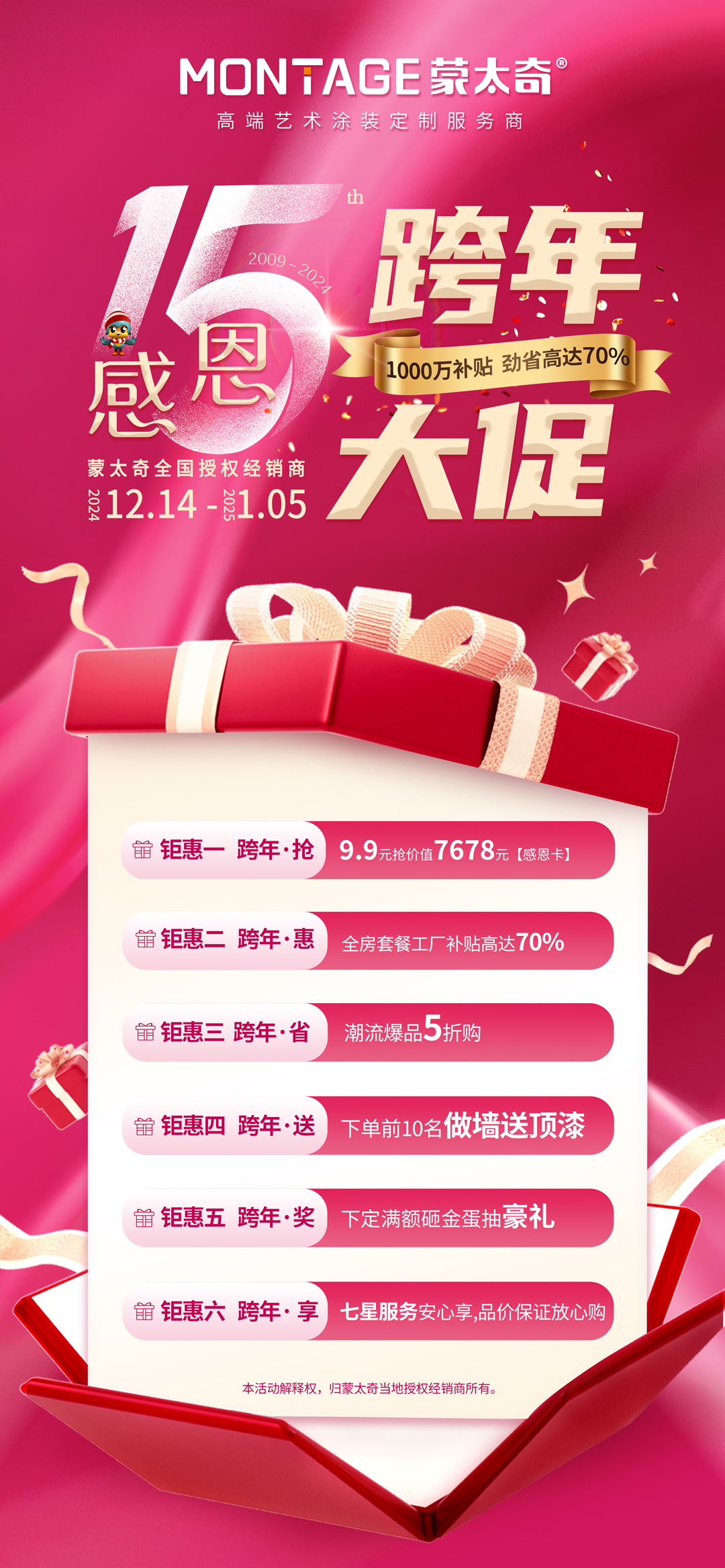 此次大場(chǎng)直播必將把2024“蒙太奇感恩15載·跨年大促”全國(guó)性活動(dòng)推向高潮。