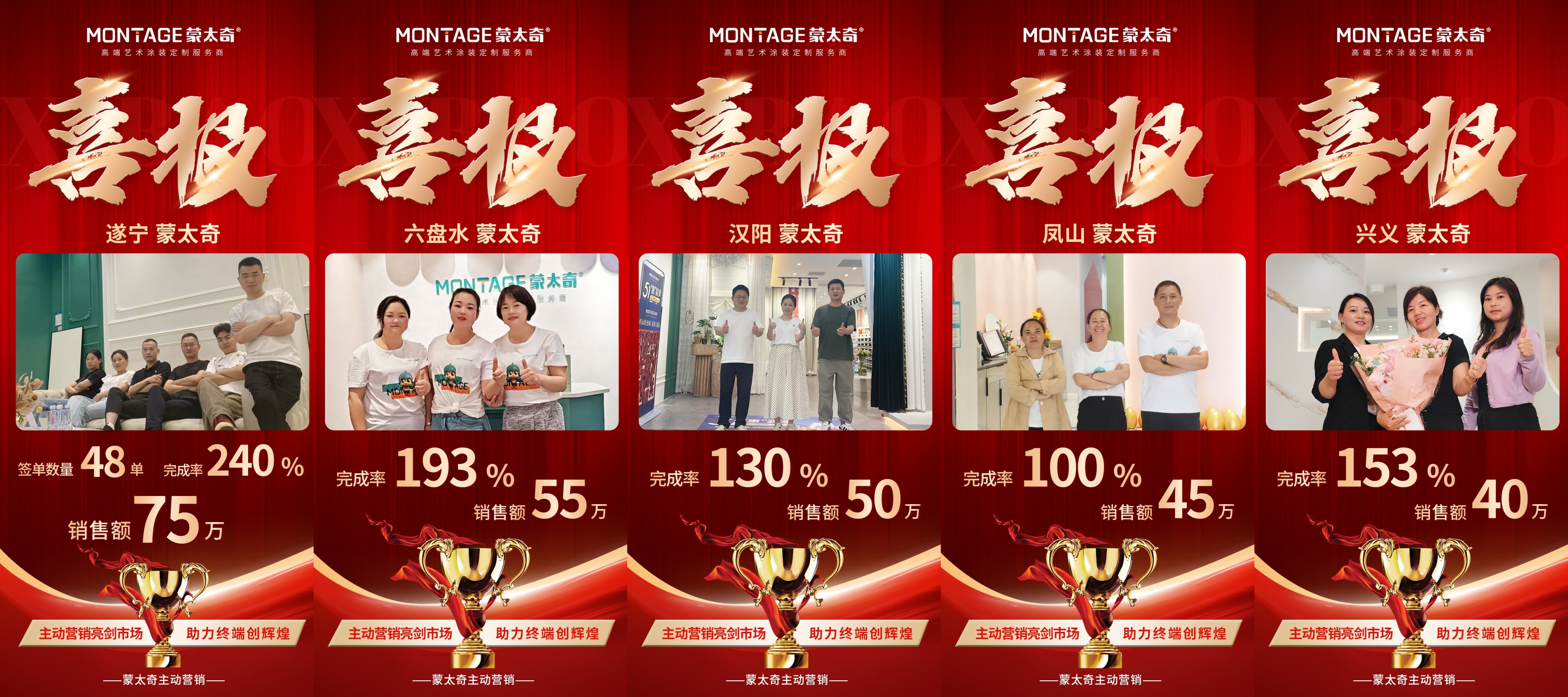 特別值得關(guān)注的是,在蒙太奇總部主動(dòng)營(yíng)銷團(tuán)隊(duì)劉坤林老師、王潔老師的全程指導(dǎo)下,遂寧店以總簽單48單,目標(biāo)完成率240%的亮眼戰(zhàn)績(jī),成為本次聯(lián)動(dòng)活動(dòng)中最耀眼的標(biāo)桿門店。遂寧店作為蒙太奇西南區(qū)域的優(yōu)秀經(jīng)銷商,遂寧專賣店負(fù)責(zé)人鄧飛先生與蒙太奇攜手走過(guò)11年征程,憑借過(guò)硬的施工工藝,獨(dú)有的自研工藝,成功征服當(dāng)?shù)叵M(fèi)者。此次活動(dòng)的圓滿收官,不僅幫助終端門店實(shí)現(xiàn)突破性增長(zhǎng),為其他終端門店提供可復(fù)制的實(shí)戰(zhàn)范本。
